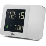 Funkwecker · Anzeigentyp: digital · Funktionen: 12/24-Stundenmodus, Crescendo-Alarm, Datumsanzeige, Hintergrundbeleuchtung, Schlummerfunktion, Temperaturanzeige · Farbe: weiß · Stromversorgung: Batterie