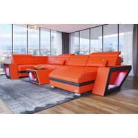 Sofa Dreams Wohnlandschaft Ledercouch Sofa Leder Berlin XXL U Form Ledersofa, Couch, mit LED, wahlweise mit Bettfunktion als Schlafsofa, Designersofa orange|schwarz