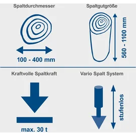 Holzspalter SCHEPPACH "»HL3000«, 550 W", blau, B:68cm H:195cm T:98cm, Holzspaltmaschinen, Spaltkraft 30 Tonnen