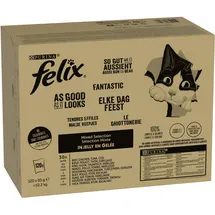Jumbopack Felix "So gut wie es aussieht" Gelee 120 x 85 g - Gemischte Vielfalt (Rind, Huhn, Kabeljau und Thunfisch)