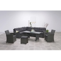 Ragnarök Möbel-Design Gartenlounge-Set Dining Lounge Wieland XL, (Set, 1 Ecklounge, 2x Hocker, 1x Hochlehner Sessel, Alu, Polyrattan), Sitzpolster ca. 16 cm dick beige
