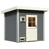 Karibu Gartensauna Hytti 0 terragrau Energiesparende Saunatür Ohne Ofen inkl. 10-teiligem gratis Saunaset im Wert von 232,94 €