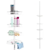 BAOYOUNI Teleskop Eckregal Badregal mit 4 Ablagen und 1 Handtuchhalter, ohne Bohren Duschregal Teleskopregal, für Dusche Bad Küche und Haushalt, Höhenverstellbar von 185 bis 240cm oder 255 bis 310cm